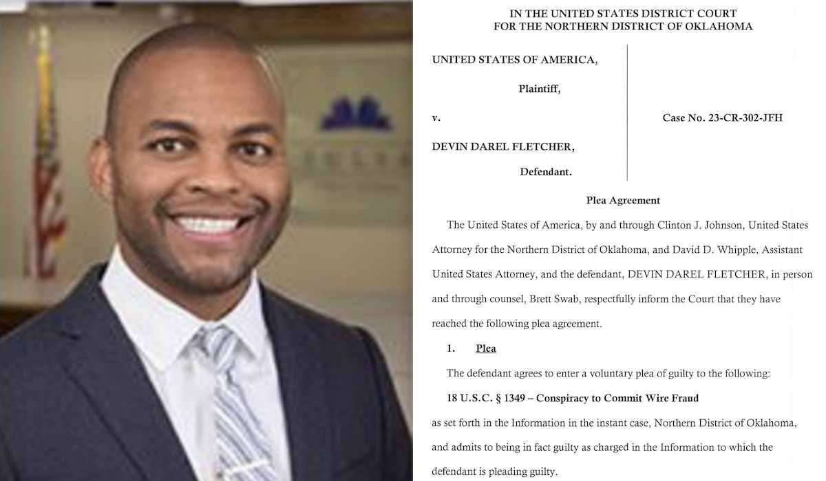 After initially pleading not guilty to the charge against him, former Tulsa Public Schools administrator Devin Fletcher changed his plea to guilty this morning, admitting details in the conspiracy to commit wire fraud case brought against him in U.S. District Court for the Northern District of Oklahoma.