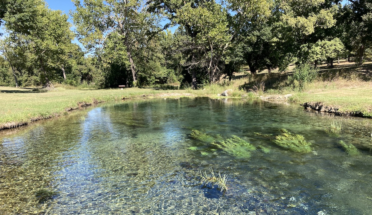 The Arbuckle-Simpson Aquifer stretches more than 500 square miles, but its main outlet, near Ada, Oklahoma, is just a small pond. (Brett Fieldcamp)