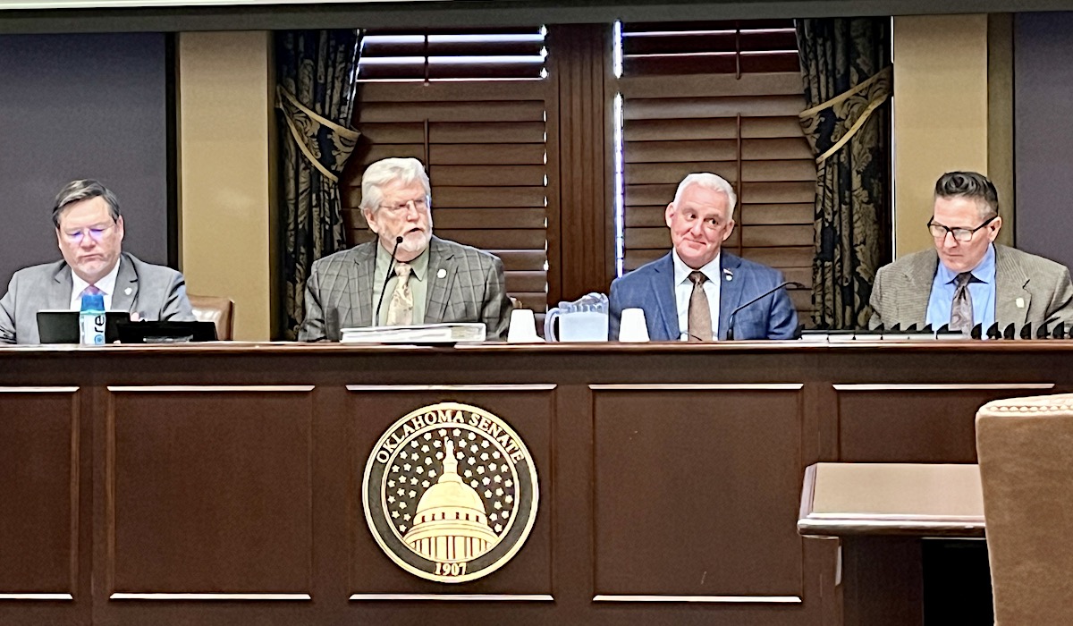From left to right: Senate A&B Vice Chairman Chuck Hall (R-Perry), Senate A&B Chairman Roger Thompson (R-Okemah), Sen. Paul Rosino (R-OKC) and Sen. Todd Gollihare (R-Kellyville) conduct a meeting of the Senate Appropriations and Budget Committee on Wednesday, Feb. 7, 2024. (Tres Savage)