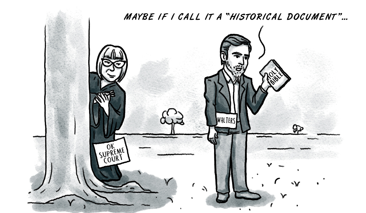 The justification for this Ryan Walters Bible mandate still seems a little unclear. His statements on the matter include something about kids needing to “understand the stories” and “properly contextualize foundation of our nation.” I seem to remember learning a little different origin story for this country, but that must have been in those dark, heathen years known as the 1990s.