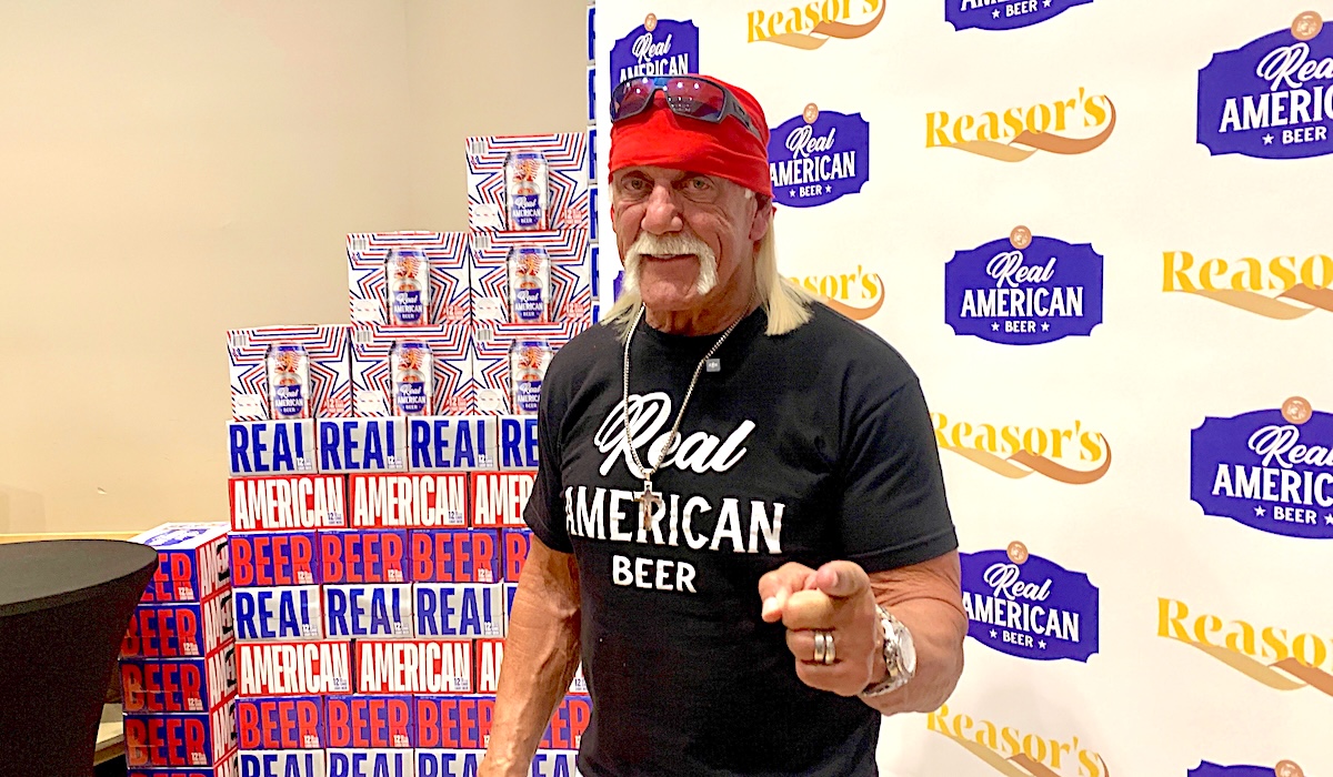“Brother! Hulk Hogan here, don’t you know. Don’t you recognize me? I’m here with Reasor’s grocery store brother — my new tag team partner. We’re going to be running wild with Hulk Hogan’s Real American Beer. You better get down here, get some and see me. I need to arm wrestle somebody real bad,” Hogan said before breaking character. “The energy is crazy. Now I need a nap.”