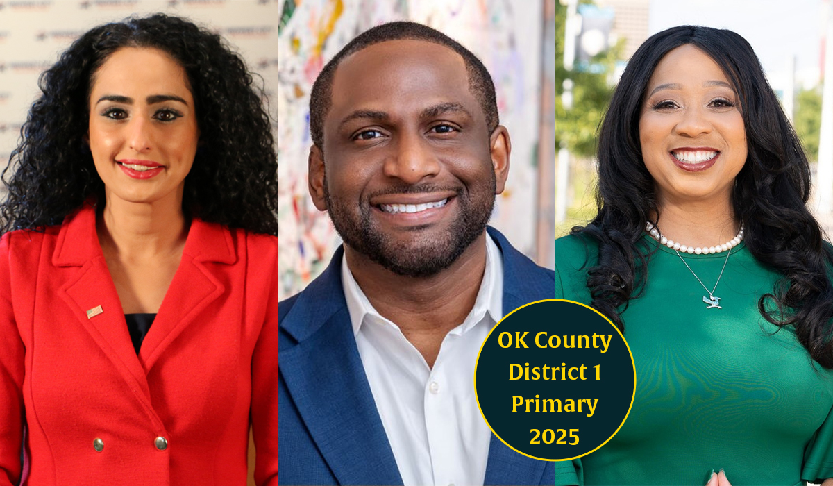 Midwest City Councilwoman Sara Bana, Rep. Jason Lowe (D-OKC) and former Sen. Anastasia Pittman (D-OKC) are the Democrats vying to replace former District 1 Commissioner Carrie Blumert, who resigned in September to become executive director of Mental Health Association Oklahoma. Pittman lost to Blumert in 2022 by just 120 votes.
