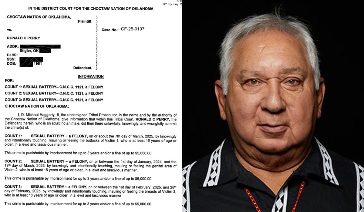 Facing allegations of serial sexual misconduct against women who work for the tribe, former Choctaw Nation Tribal Council member Ron Perry was charged April 1 with six counts of sexual battery in Choctaw Nation District Court.