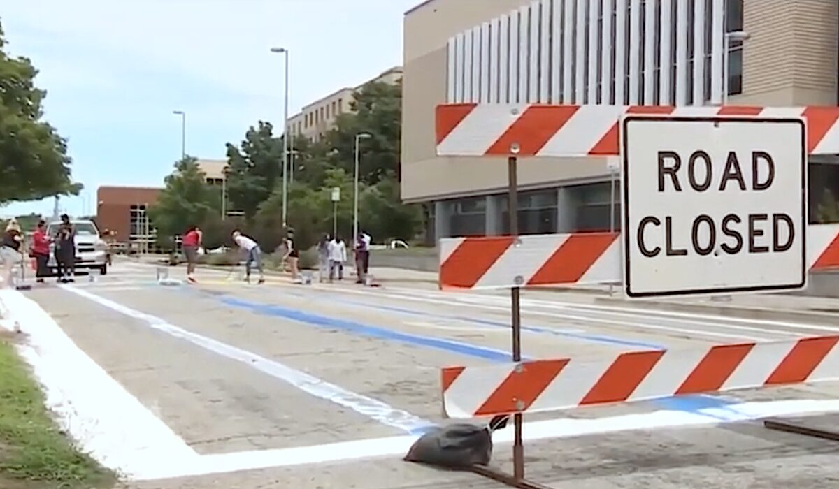 The lawsuit stems from an incident in Oklahoma City in June 2020, after the murder of George Floyd in Minneapolis. Amid protests across Oklahoma, a group of citizens obtained a permit to paint “a mural in support of Black lives and racial justice” in front of the Oklahoma City Police Department headquarters. The plaintiffs’ brief says city employees set up barricades blocking the street for the mural painting, while the state’s brief argues “one plaintiff” with an “AR-15 style rifle” moved the barricades on the third day of painting.