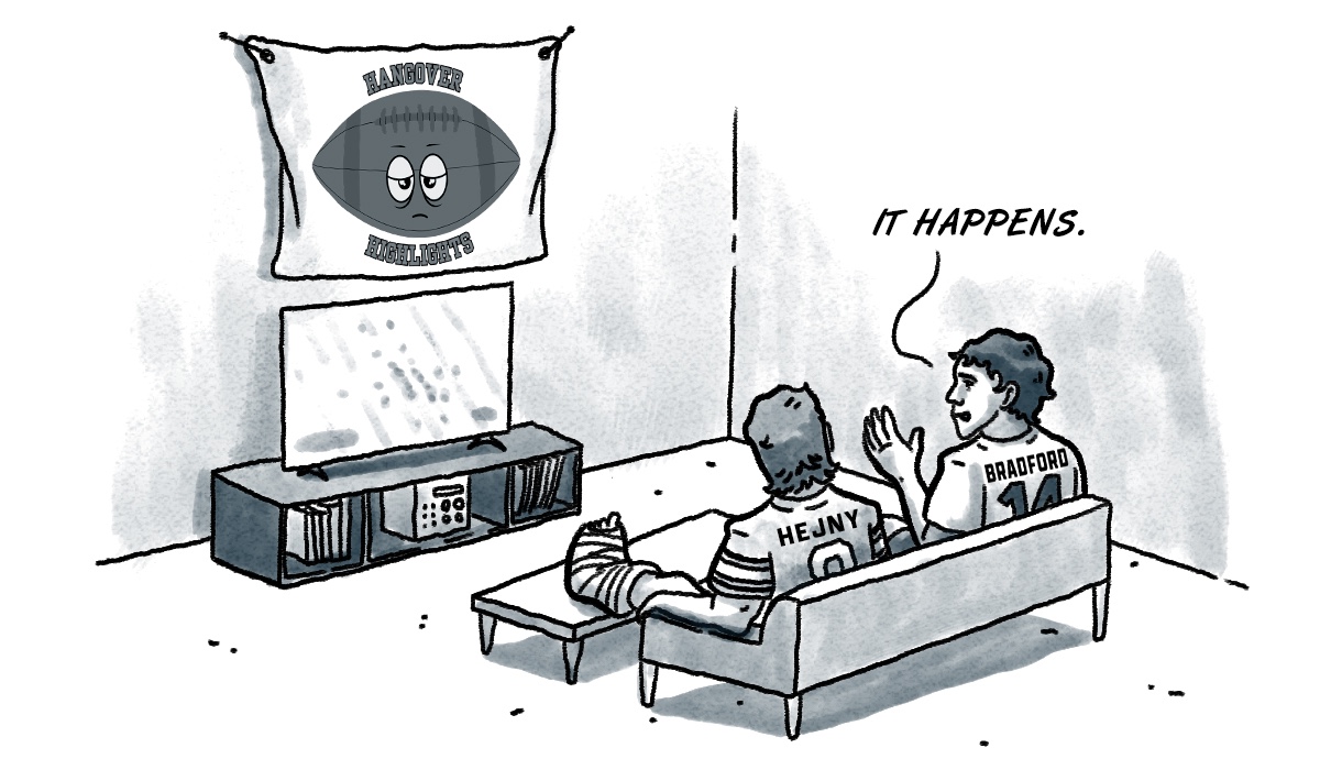 - With Hejny, the ‘Pokes were doing exactly what they needed to do against an FCS team. Without him, things devolved into a bit of a mess. I feel comfortable in saying OSU’s season prognosis rests on Hejny’s health. I felt the same way when Sam Bradford was injured for OU back in 2009, and I’m grateful for Sundaze cartoonist Mike Allen connecting those painful dots in the rendering above.