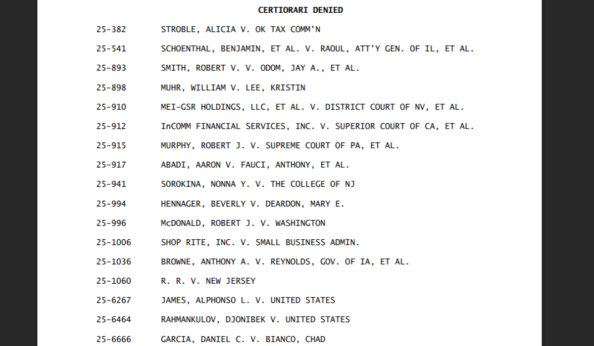The U.S. Supreme Court today declined to hear Stroble v. Oklahoma Tax Commission, leaving the Oklahoma Supreme Court’s controversial ruling on income tax jurisdiction intact.